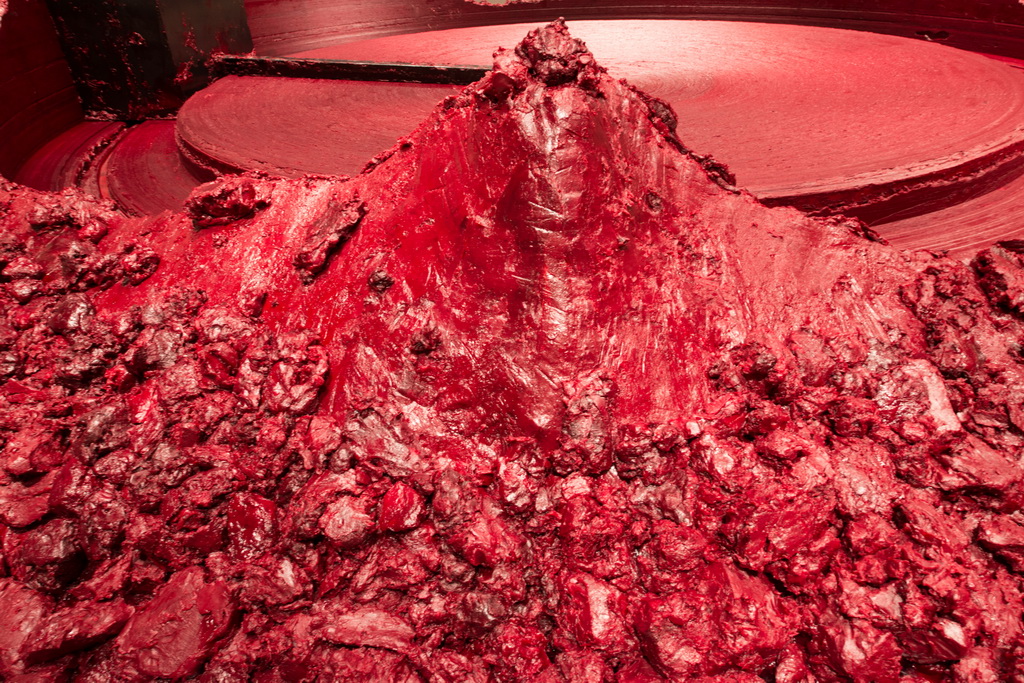 Anish Kapoor, My Red Homeland, 2003. Wax, oil-based paint, motor, and steel. Diameter: 12 m, height variable. Edition 1/1, 1 A.P. Guggenheim Abu Dhabi. © Anish Kapoor